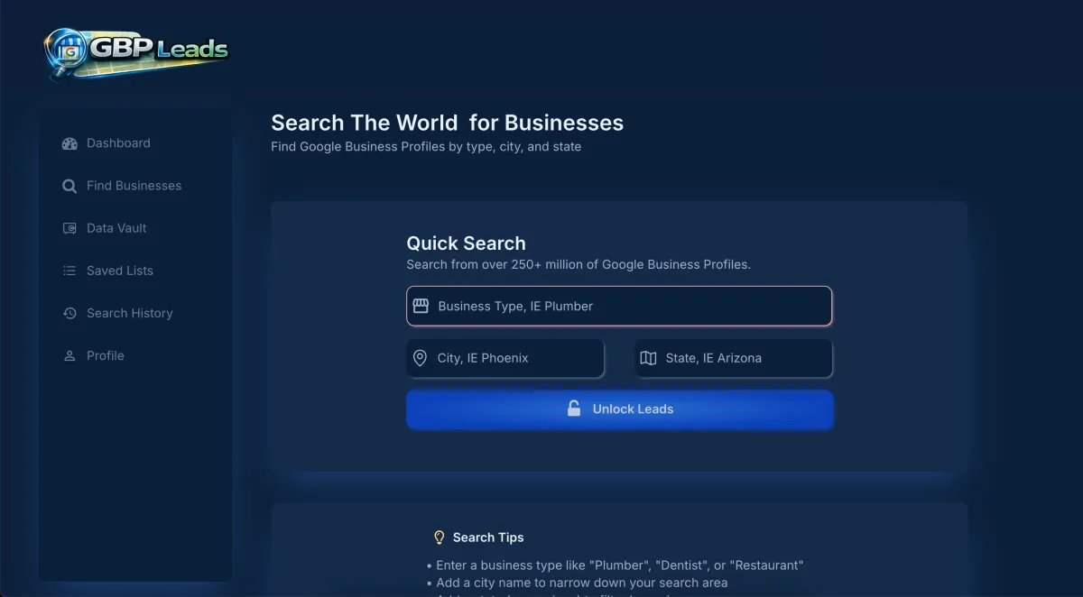 GBP Leads gives you clean, real-time Google Business Profile leads - filtered, verified, and ready to call. No more scrubbing bad data. No more wasted hours. Just qualified leads that pick up the phone.