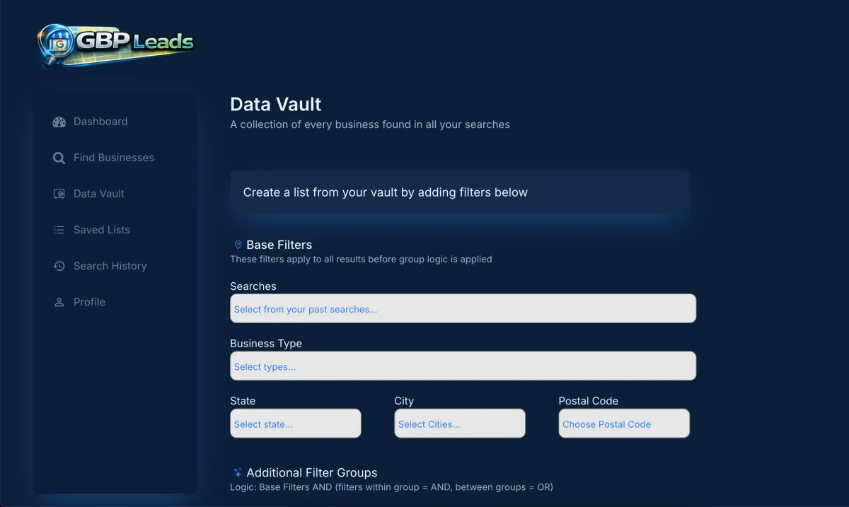 Every business has a unique Google Place ID. GBP Leads uses that to ensure no business ever appears in your vault more than once, no matter how many searches you run.